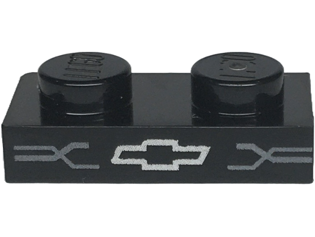 3023pb10 | Plate 1 x 2 with Silver Chevrolet Logo and Dark Silver Grille Lines Pattern | LEGOPART