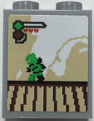 3245cpb171 | Brick 1 x 2 x 2 with Inside Stud Holder with Arcade Platform Game Screen with Health Bar and Green Ninja Minifigure Pattern | LEGOPART
